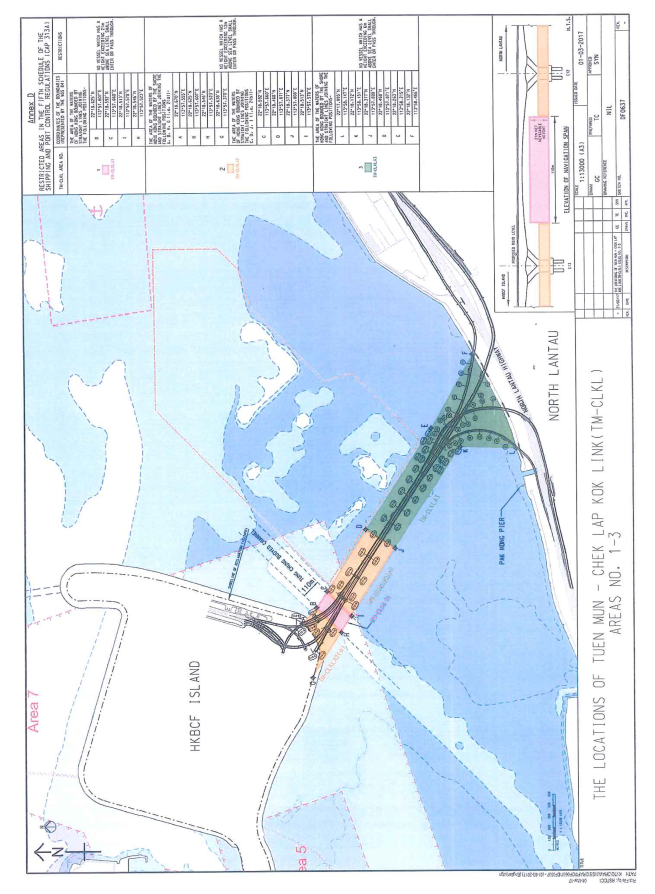 According to Shipping and Port Control Regulation (Cap. 313A) and the Merchant Shipping (Local Vessels) (General) Regulation (Cap. 548F) for vessels passing through the Tung Chung Buoyed Channel under the TML-CLKL, no vessel higher than the limit as shown in the Appendix D could access the control area.