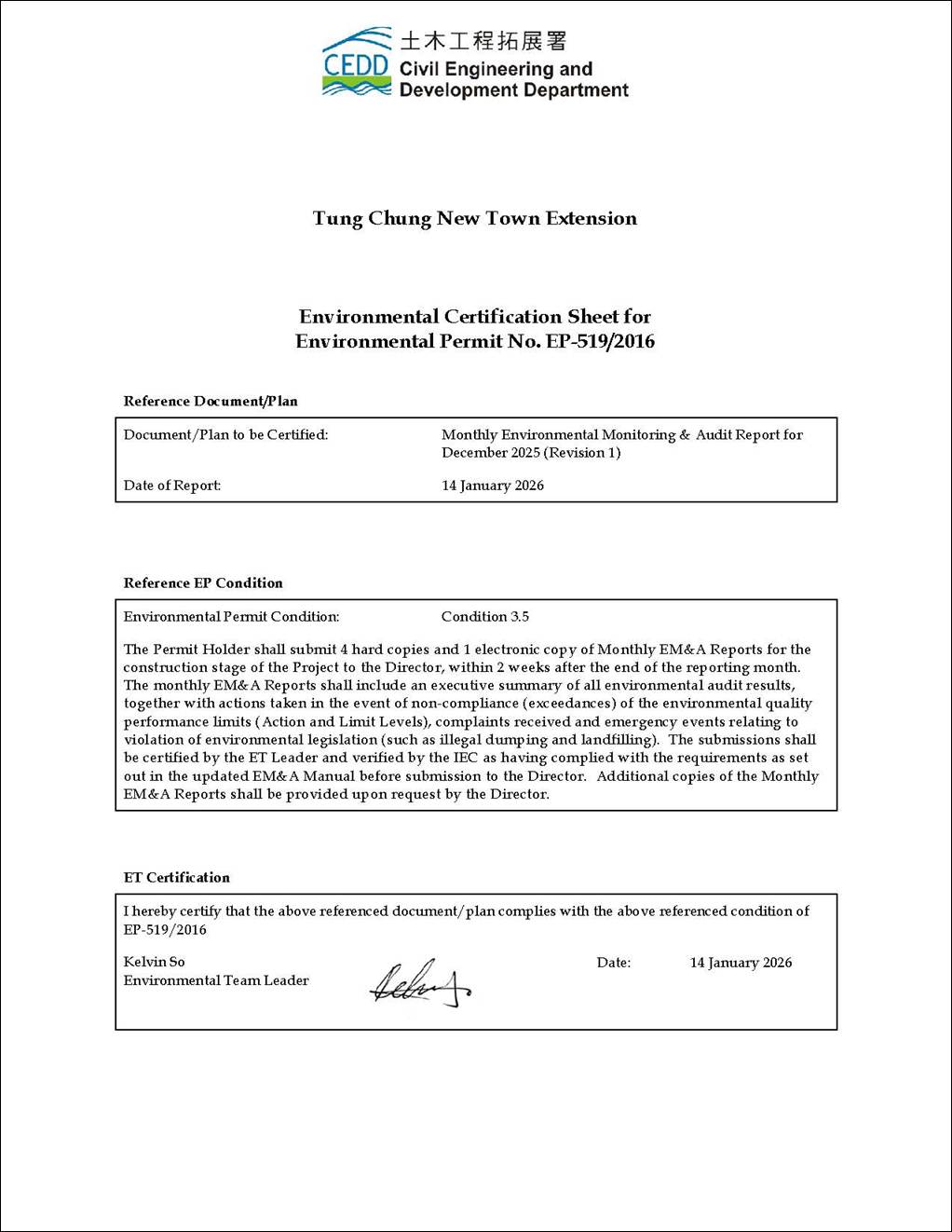 Tung Chung New Town Extension. Deposited to EPD under EP-519/2016